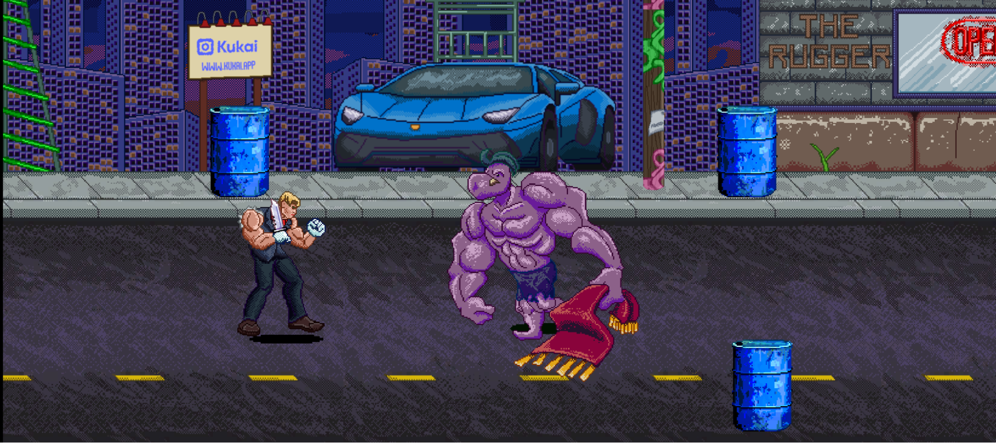 Далі — у бій. Бийтеся з інопланетянами, ейпфлюенсерами та банкірами. Розбивайте бочки: у них лежать ножі та аптечки. Збирайте ворогів докупи і бийте всіх разом, щоб не давати їм час піднятися.