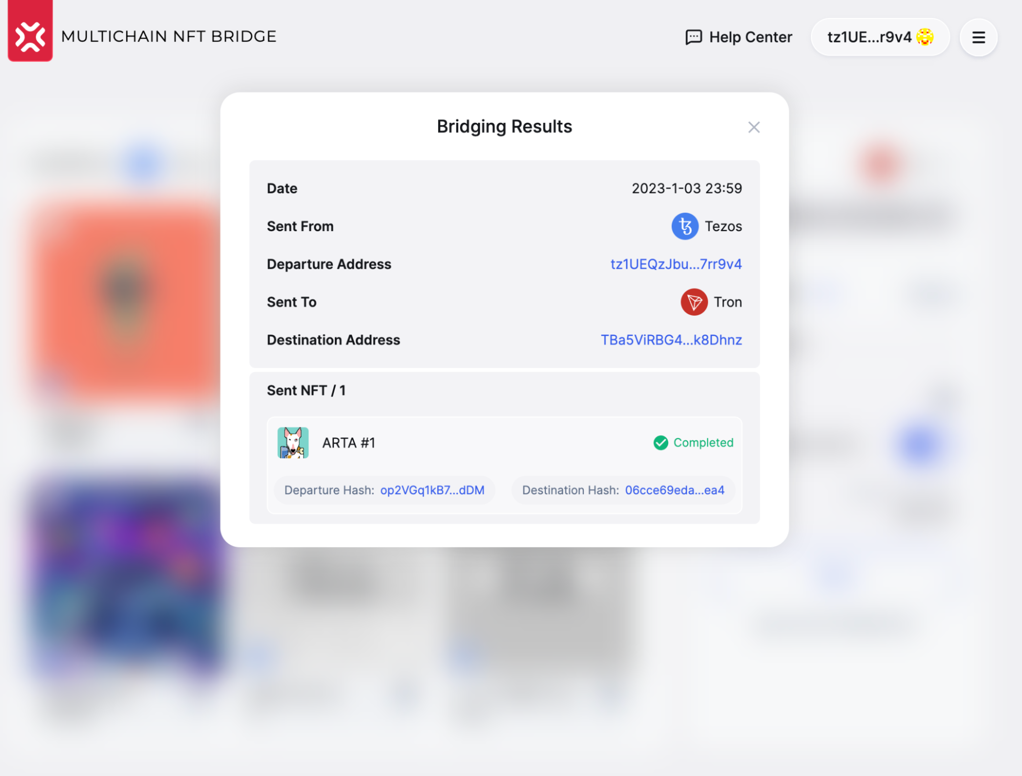 Ми отримали NFT на гаманець Tron протягом хвилини. Гаманець Tronscan не відображав прив’язане зображення, а сам XP.network та маркетплейс NFTone взагалі не бачили NFT. Але маркетплейс APENFT одразу побачив об’єкт.