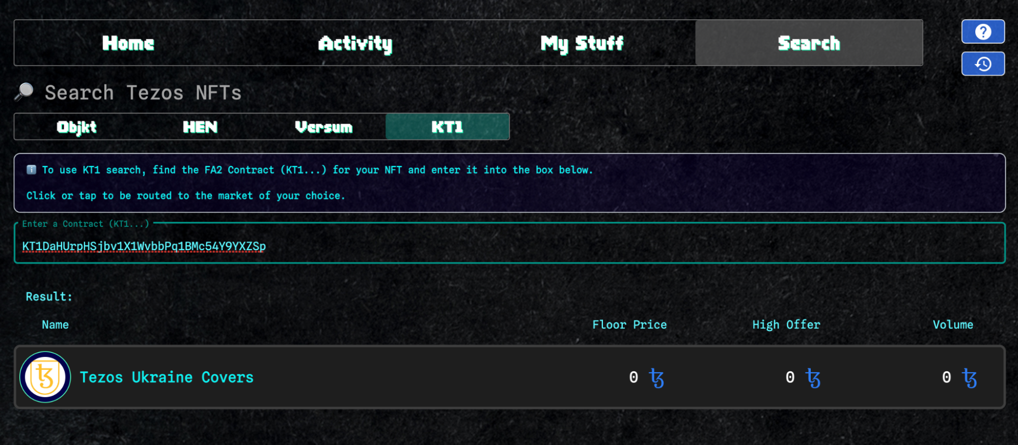 Спочатку перейти на вкладку Search, вибрати вкладку KT1 та ввести адресу колекції.