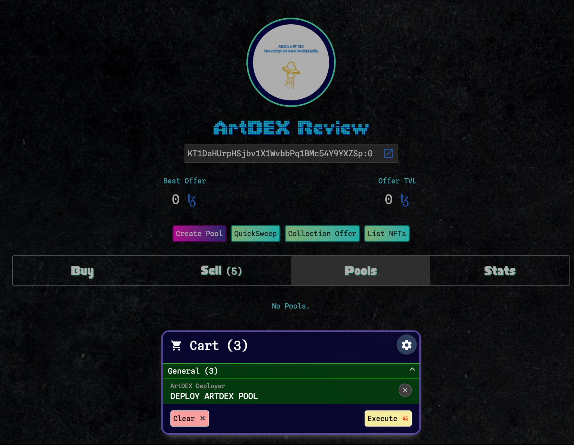 ArtDEX додасть необхідні для створення пулу операції у кошик. Потрібно його відкрити та підтвердити створення пулу.
