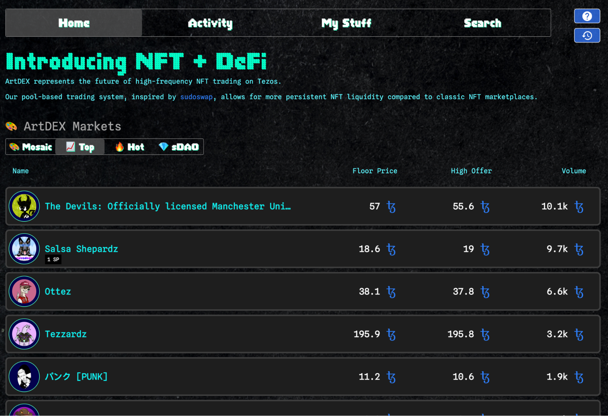 Торгівля на ArtDEX стає активнішою: 3 січня SalsaDAO загальний обсяг досяг 5000 tez, а 17 січня користувачі наторгували на 8000 tez всього за один день. Зростання обсягів швидше за все пов'язане із запуском колекції Salsa Shepardz.