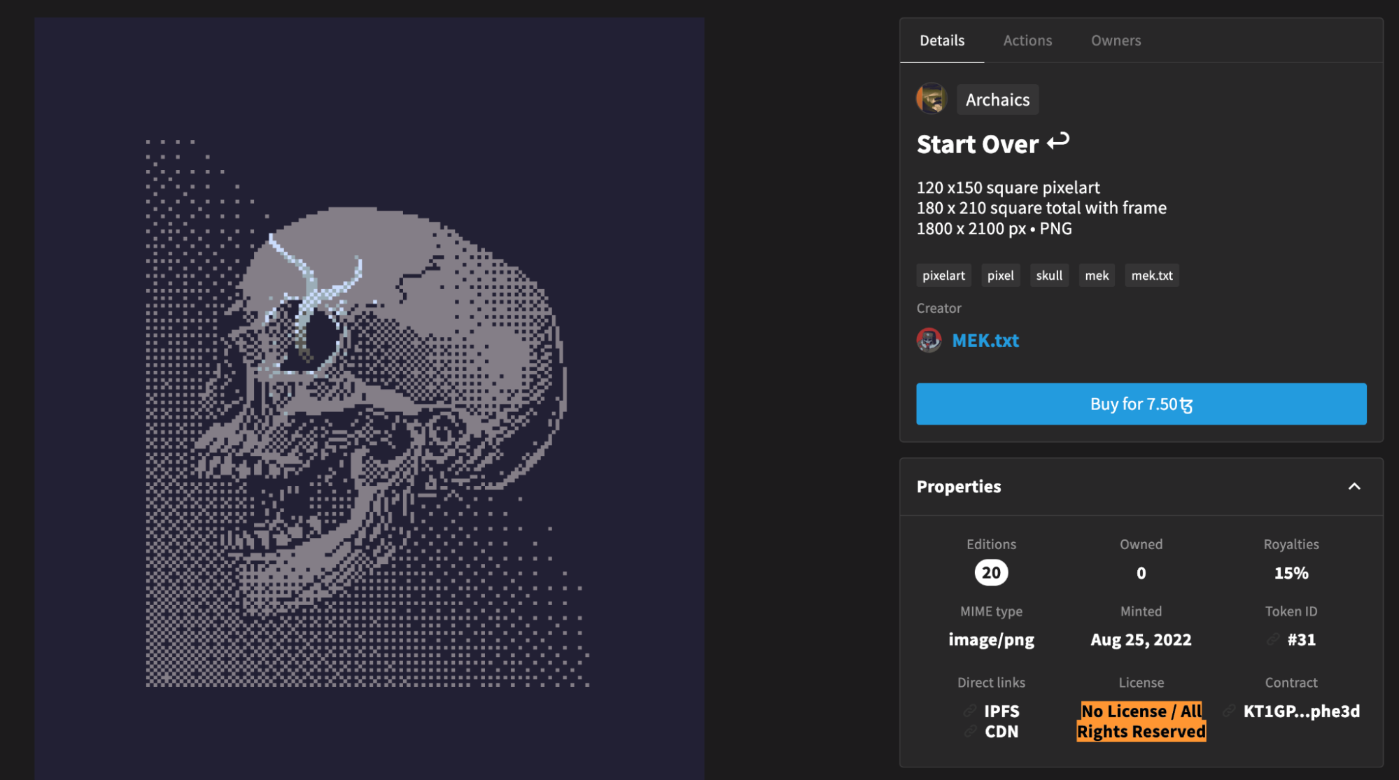 Тип ліцензії відображається у параметрах NFT. Наприклад, MEK.txt у роботах зазначає, що купівля картини не дає права на її комерційне використання.