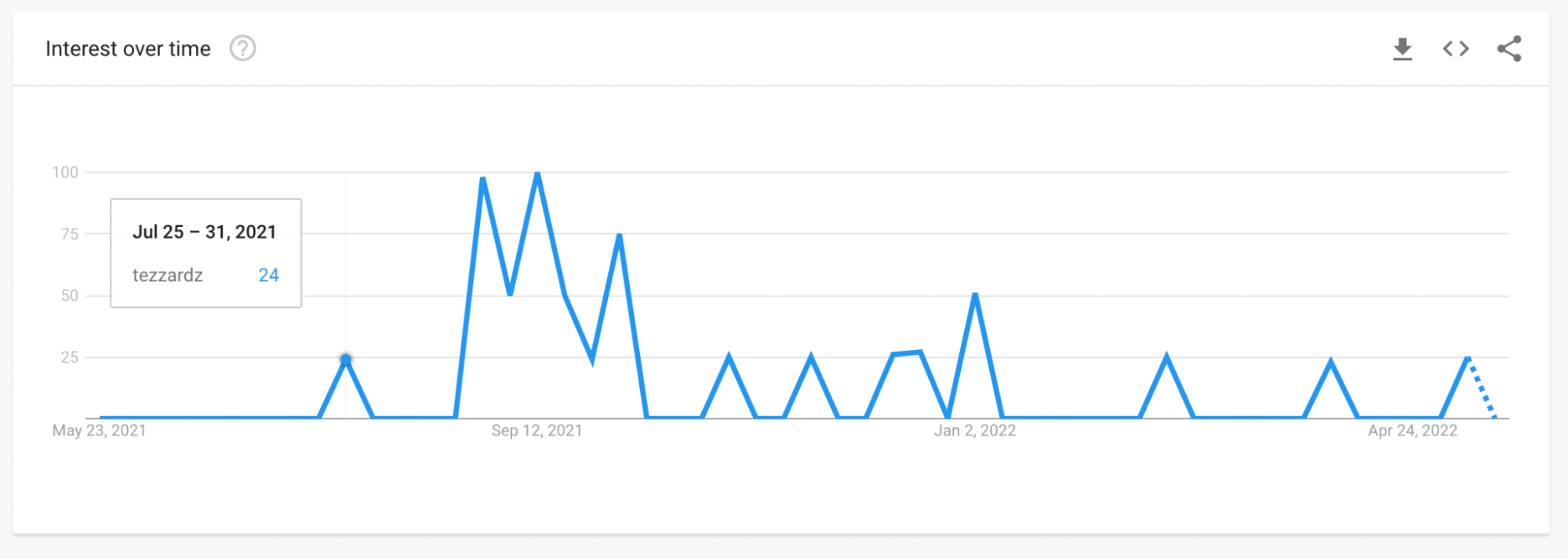 Висновок: потрібно рекламувати свої роботи, інакше їх ніхто не побачить і не придбає. Автори великих колекцій так і роблять. Наприклад, люди шукали Tezzardz вже у липні 2021 року, за два місяці до старту мінтингу у вересні.