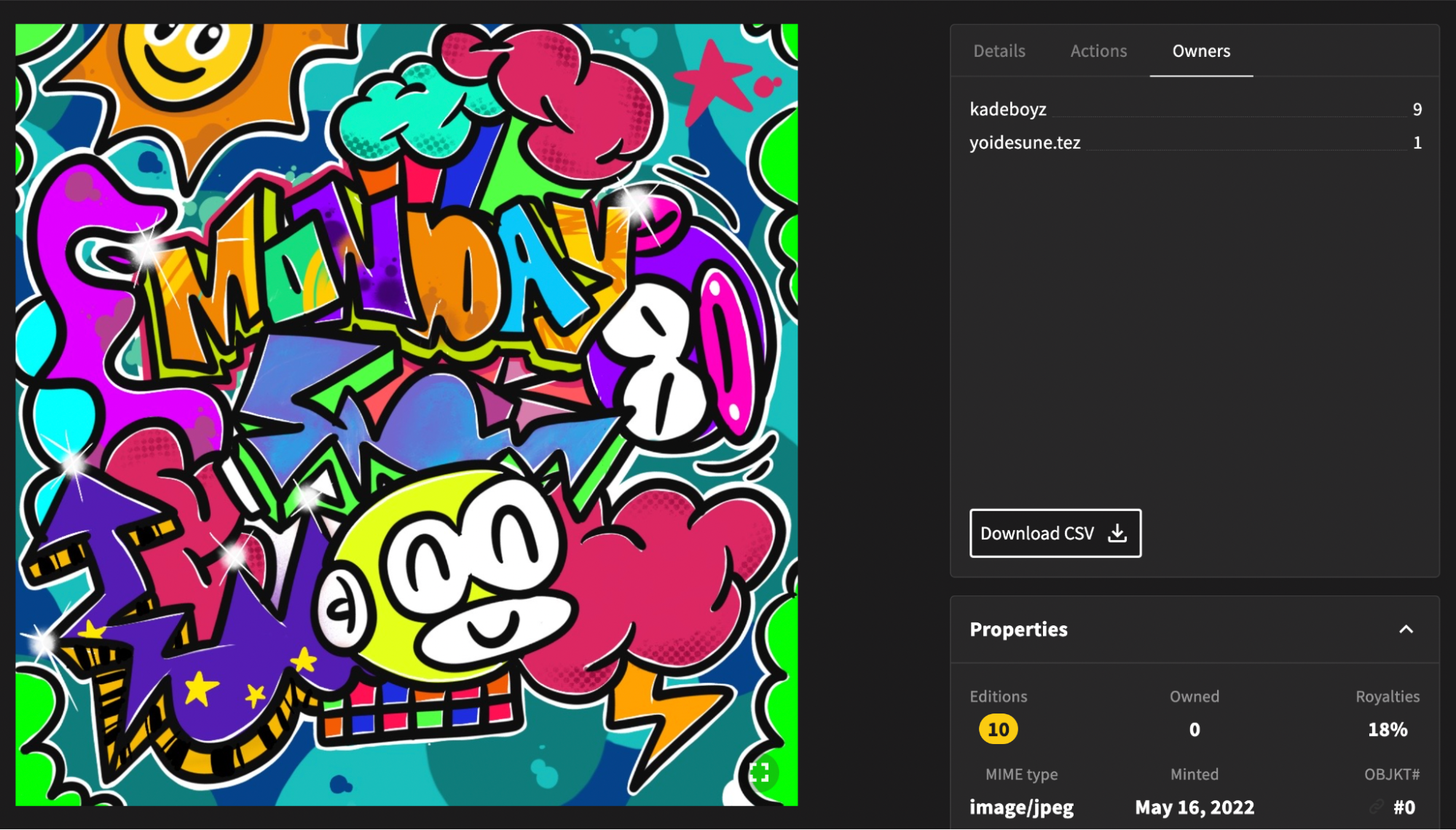 Що цікаво:користувачі купували токени і в авторів з великими колекціями, і у тих, хто випустив лише один NFT. Наприклад, художник Kadeboyz випустив лише одну картинку Monday, запостив про неї у твіттері і продав один екземпляр.