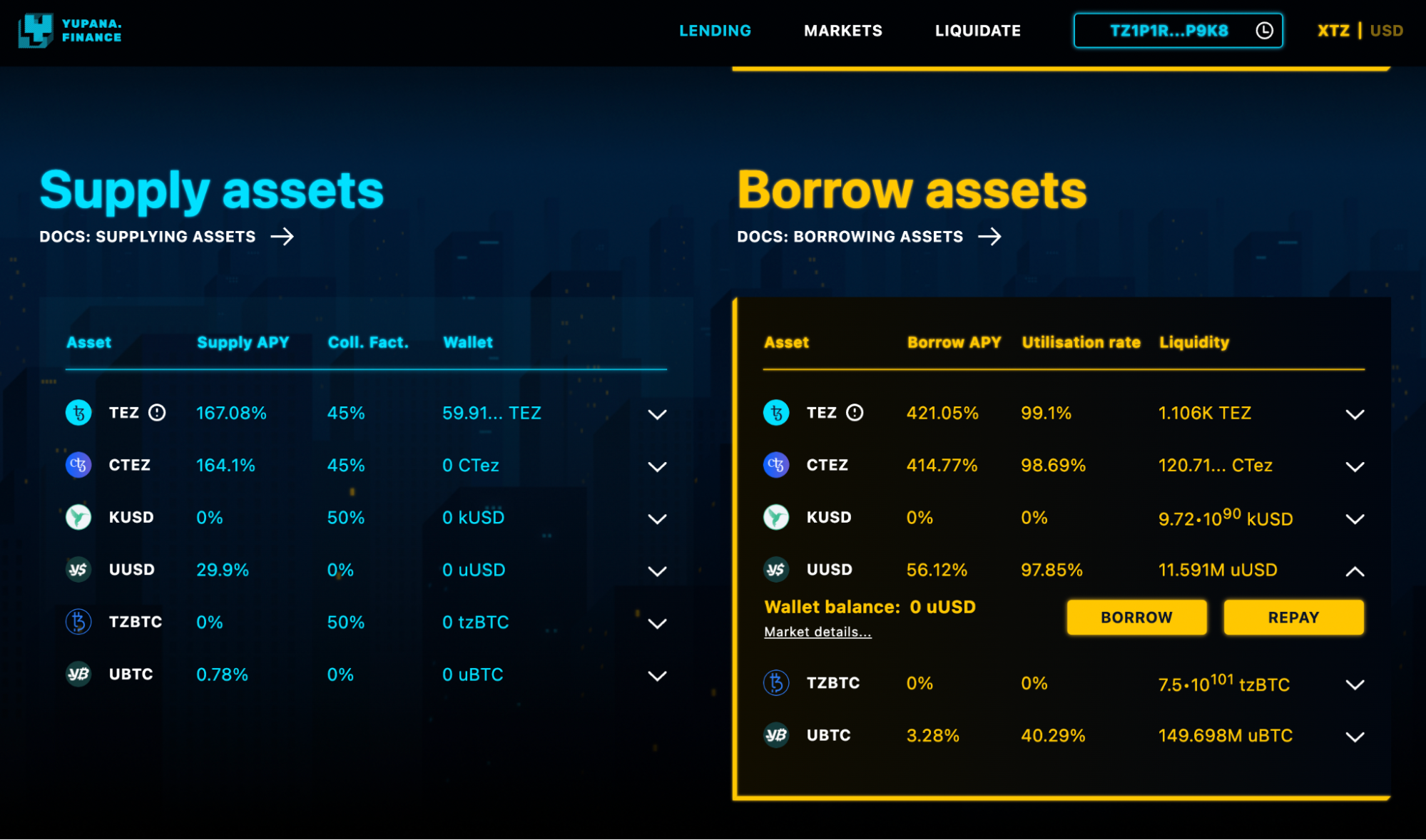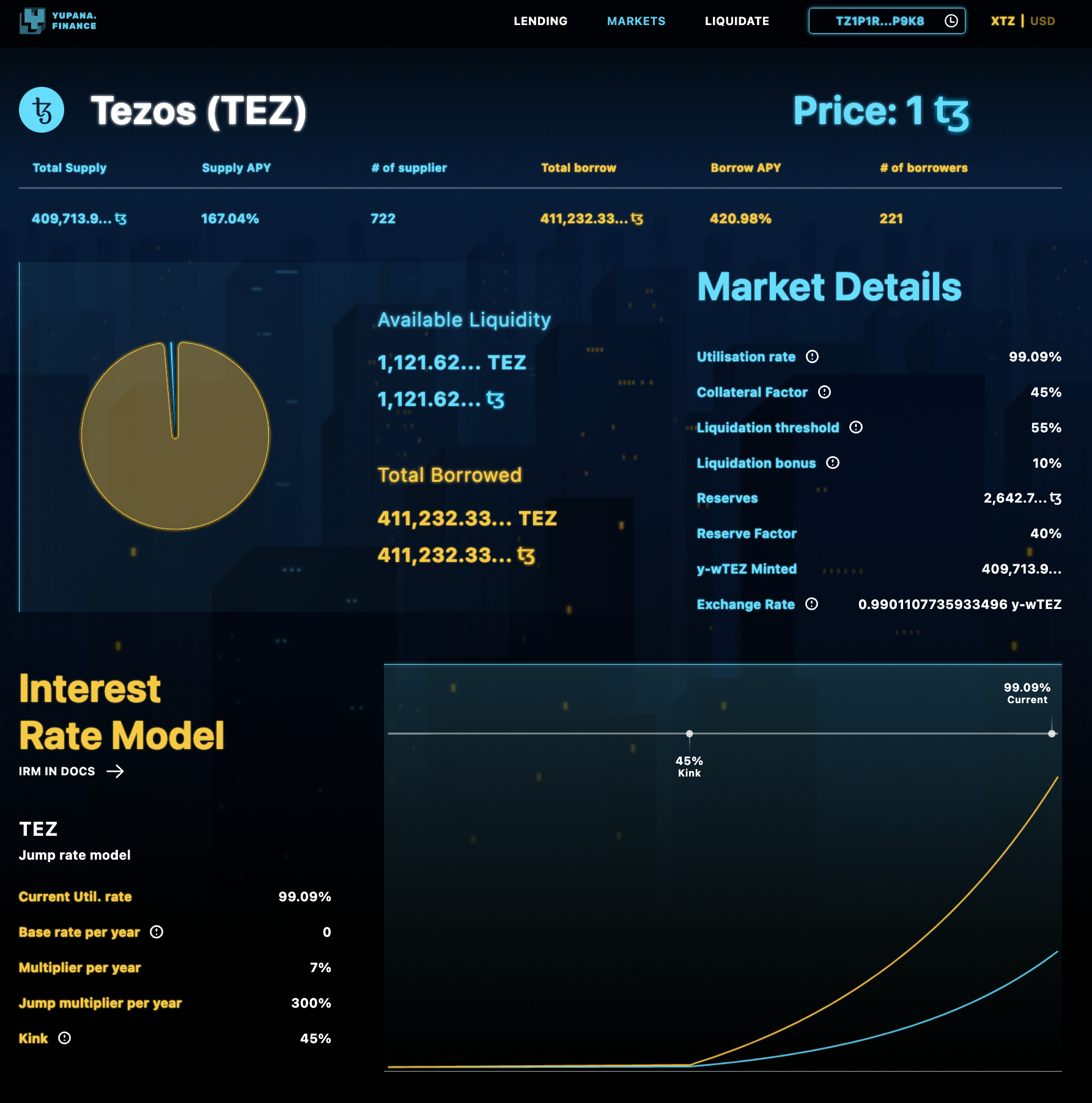 Зараз Yupana доступна тільки в тестнеті ithacanet, тому прибутковість 167% річних у tez і ліквідність tzBTC у розмірі 7,5*10^101 — несправжні. MadFish Solutions запрошують усіх охочих приєднатися до тестування та пошуку багів. Дізнайтесь більше у блозі MadFish.