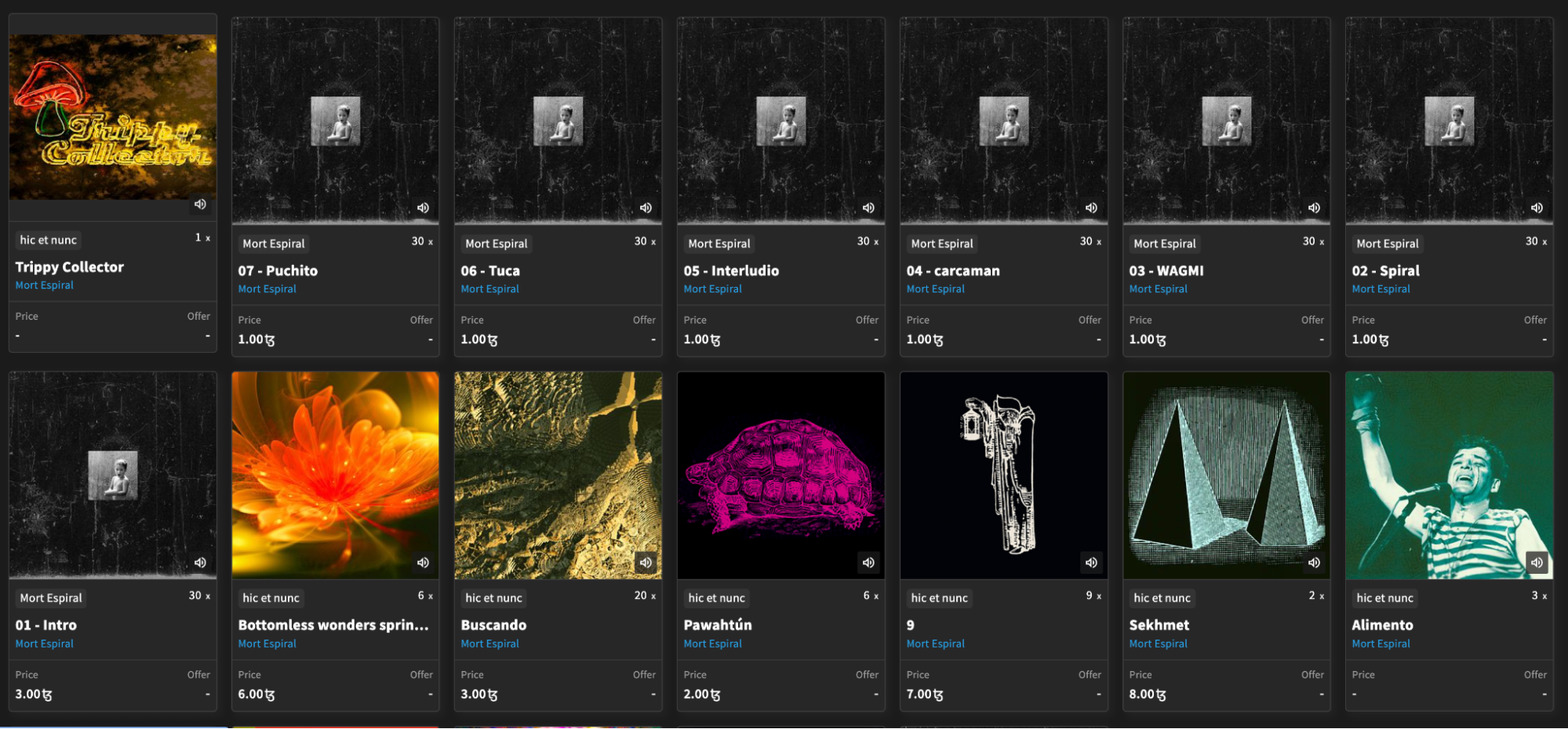 На його сторінці на OBJKT більше 20 треків, і кожен по-своєму унікальний. Ми радимо почати з тих, що з анімованим прев’ю, а там уже вирішити, чи слухати далі.