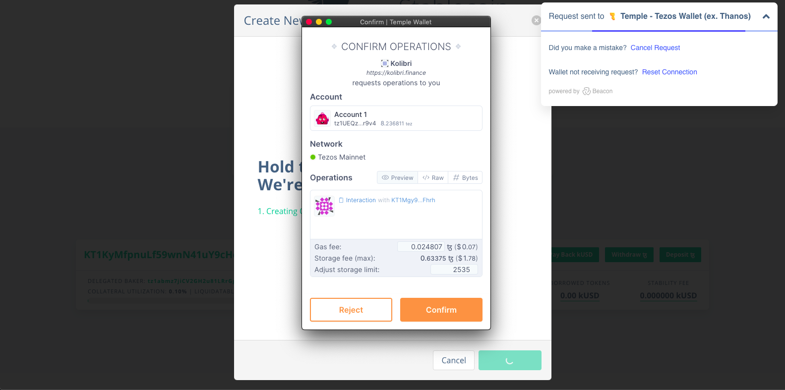 Для самостійно випуску kUSD потрібен гаманець Temple, Spire, Galleon або Kukai та 1 tez на його балансі.