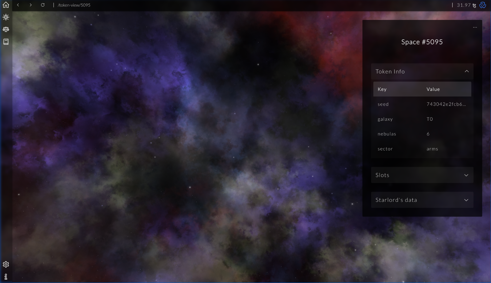 Якщо ви хочете подивитися, які ще космічні пейзажі може згенерувати Starlords, замініть число в адресному рядку на будь-яке інше, але не більше 5000, і натисніть Enter. Starlords відобразить цей токен у режимі відтворення.