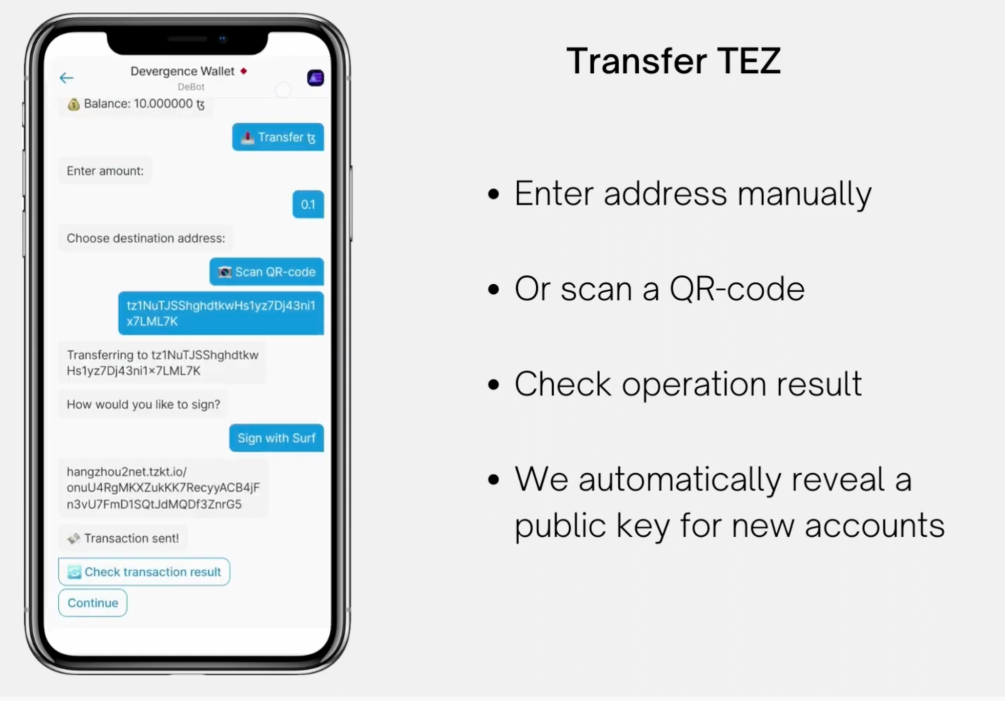 В результаті у них вийшов Devergence Wallet — DeBot для керування гаманцем Tezos із Ever Surf.