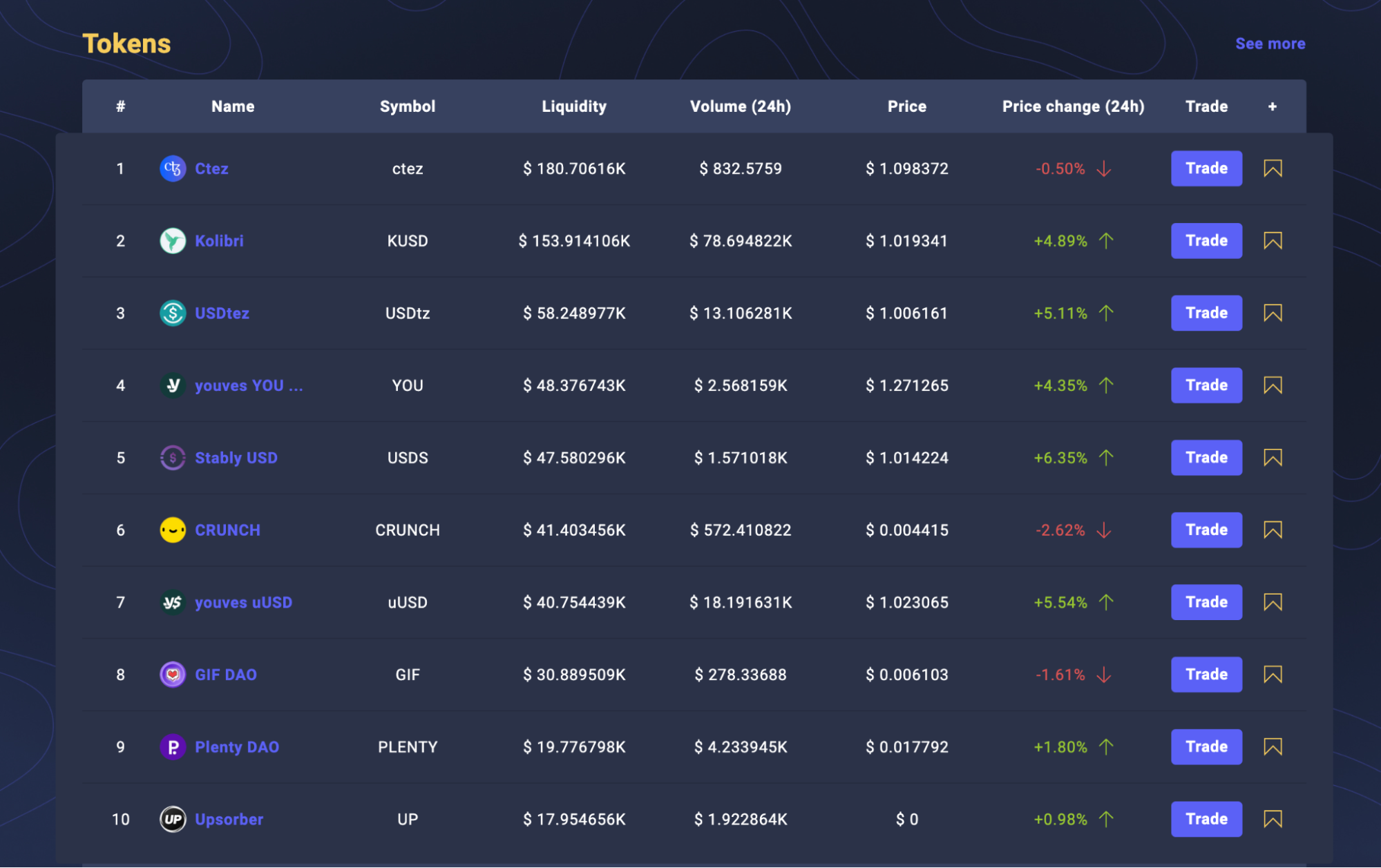 Кожен проєкт Defi має свій токен: QUIPU, SMAK, YOU, PLENTY (скоро буде PLY!), sDAO та інші. Але ви знаєте, скільки вони зараз коштують і де подивитися ціну? На Coingecko всіх немає, плюс там не можна відфільтрувати токени по блокчейну Tezos.