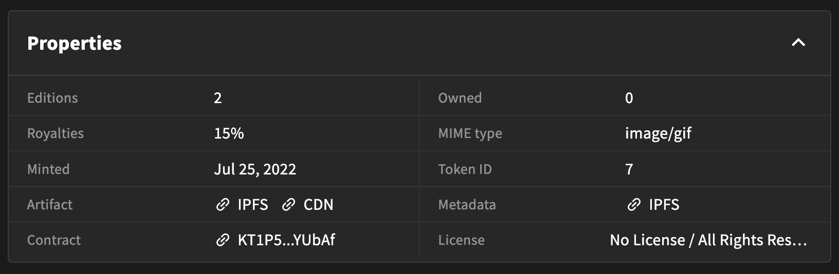 IPFS безкоштовна та децентралізована, тому NFT-маркетплейси часто використовують її для зберігання NFT. На будь-якому маркетплейсі Tezos можна знайти посилання на контент в IPFS-дзеркалі, а в метаданих NFT — прямі IPFS-посилання на контент. Наприклад, Objkt.com надає відразу все: пряме IPFS-посилання, об’єкт на зеркалі Objkt.com (CDN) та IPFS-посилання на метадані.