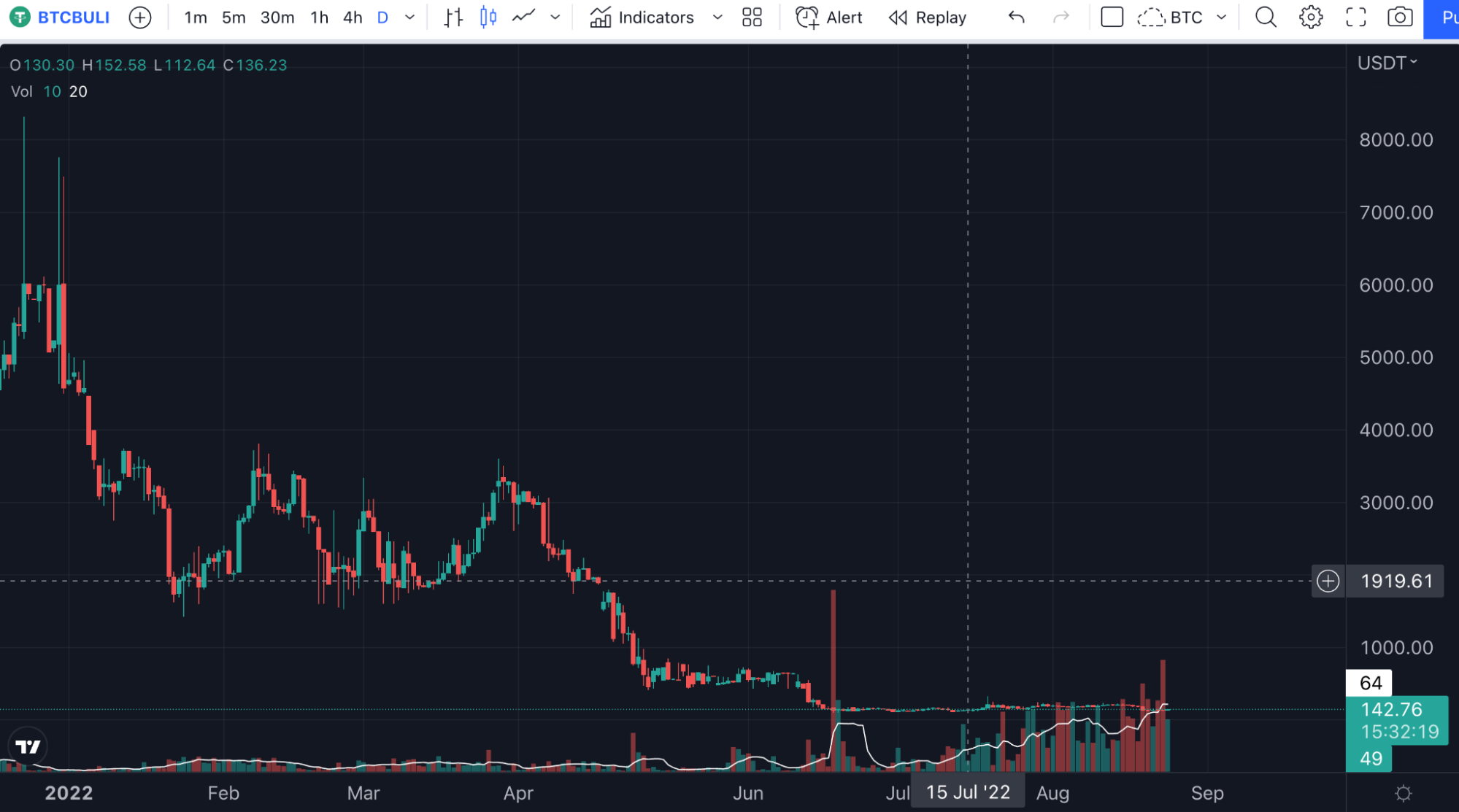 18 липня XTZ зріс із $1,57 до $1,74 — на 10,8%. Водночас XTZBULLUSD виріс з 0,00004044 до 0,00005550 — на 37%.