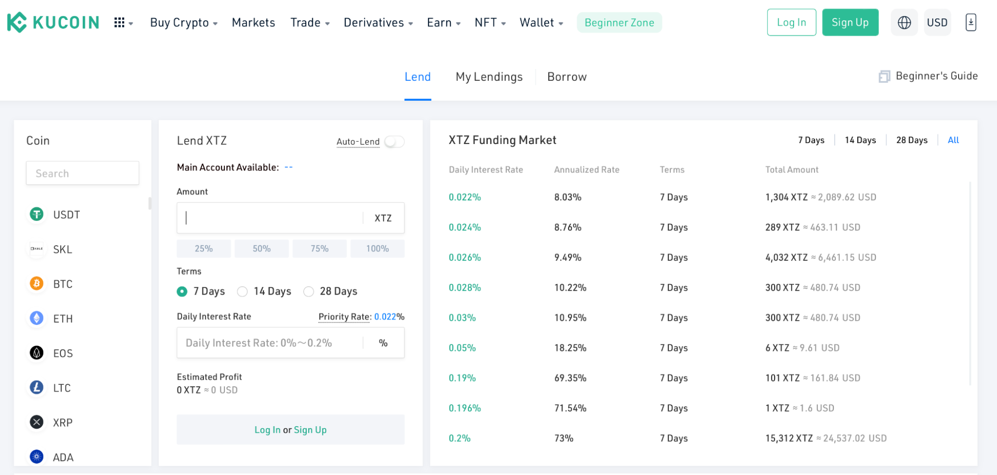 Торгувати з маржою — ризиковано. Але власники XTZ можуть давати їх в борг трейдерам та заробляти відсотки. Наприклад, на Gate.io можна позичити XTZ під 3,65% річних (0,01% на день), KuCoin — під 8% річних (0,022% на день).
