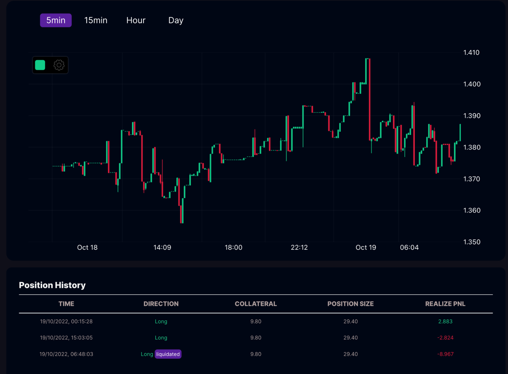 Коли трейдери закривають угоди, вони одержують прибуток із коштів, які внесли інші користувачі. Як і централізовані біржі, Zenith ліквідує позиції з плечем, якщо ціна активу змінюється, і забезпечення може вистачити покриття зобов’язань по угоді.