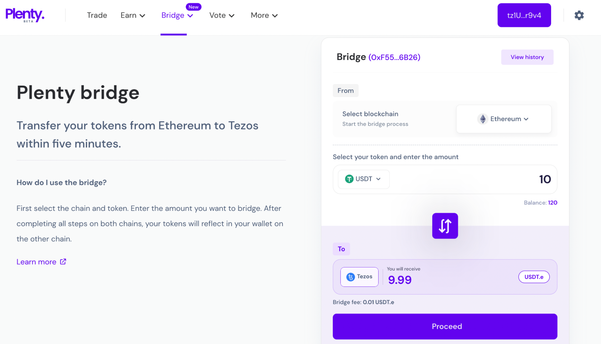 The mechanics of Plenty Bridge are quite simple (we used USDT as an example):