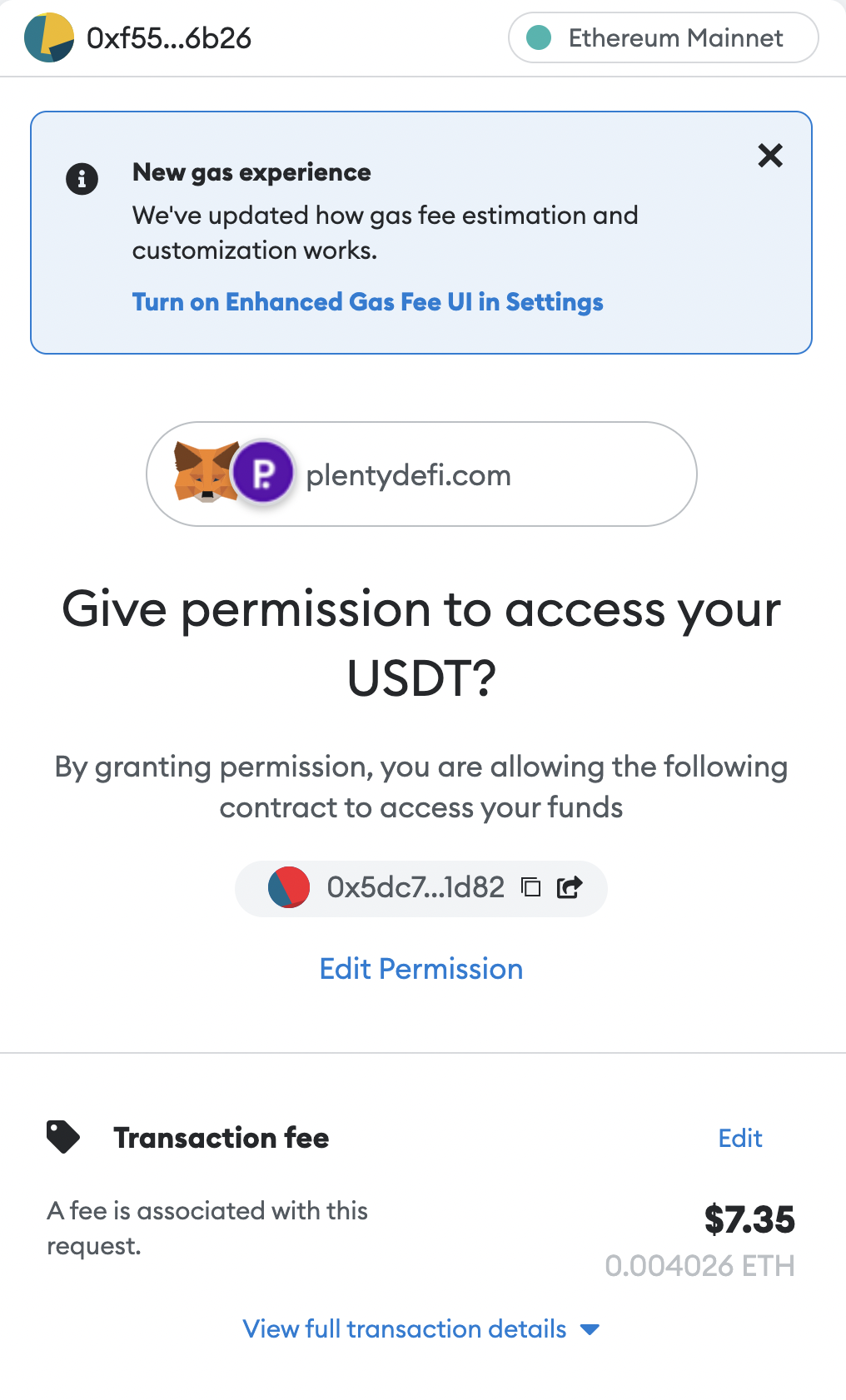 Then you need to sign the transaction. To transfer any tokens from Ethereum to Tezos, you will have to pay a fee in ETH of about $5 to $10.