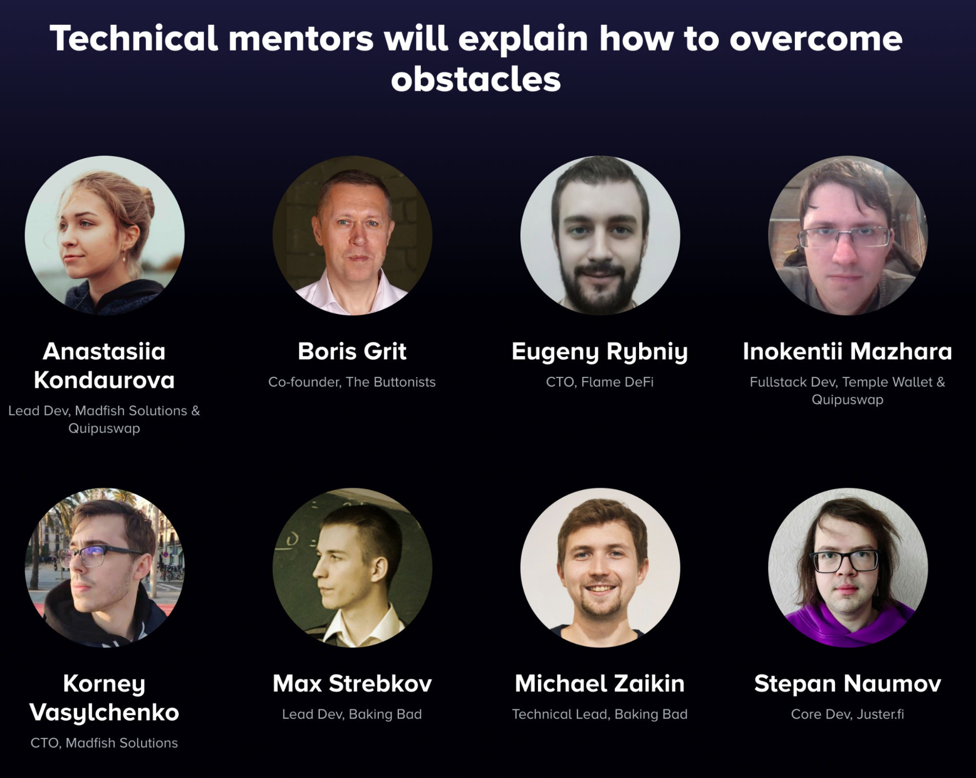 The technical mentors are the blockchain devs from some of the best Tezos teams. Developing smart contracts and blockchain apps is not popular enough to ensure the existence of books or solutions on StackOverflow. Moreover, looking for an answer could take valuable time off the project, so asking a technical mentor a question is the fastest way to solve a particular problem.