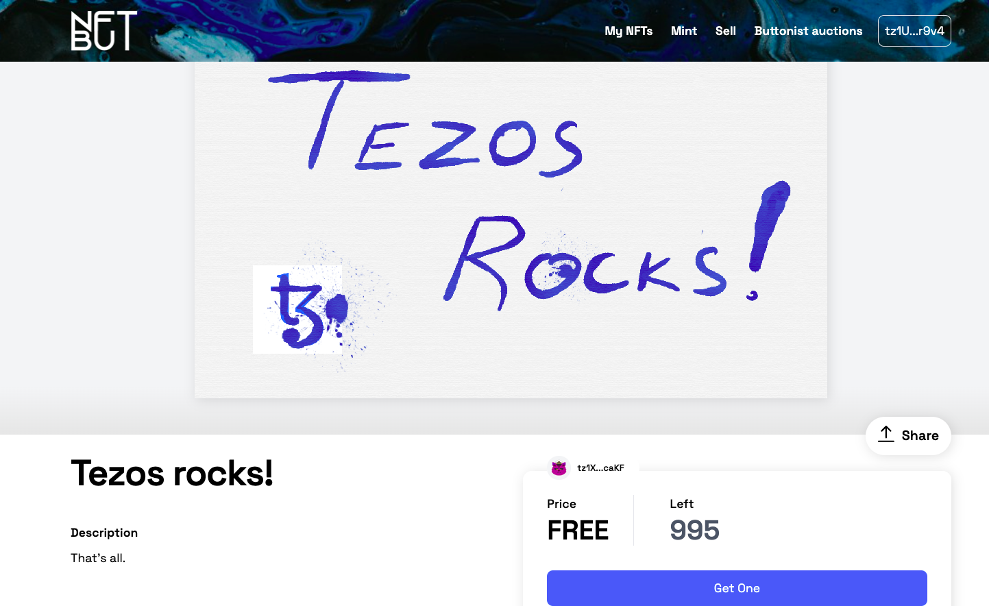 Ви можете безкоштовно забрати Tezos Rocks! на NFT Button.