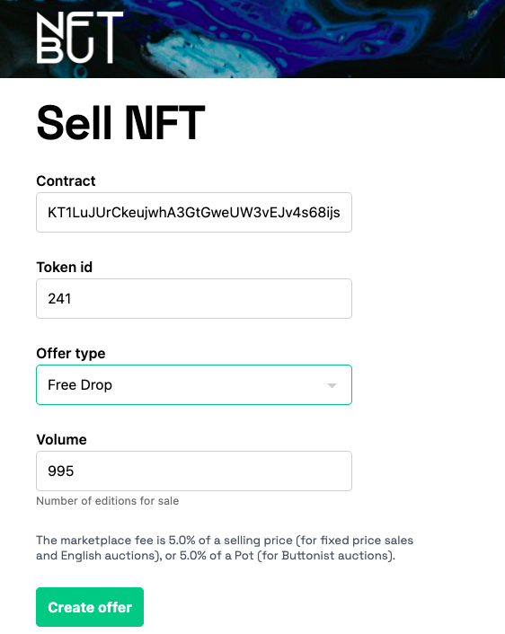 Потім натисніть Create Offer і підтвердіть транзакцію у гаманці, щоб виставити NFT на продаж.