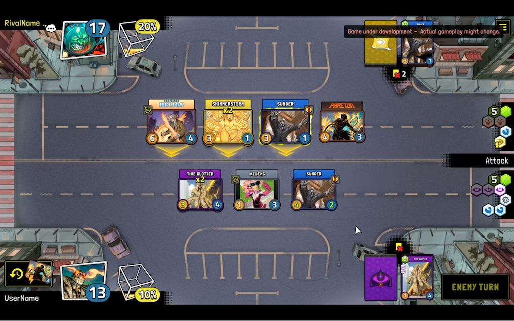 В отличие от других коллекционных карточных игр, в PixelDebates нет отдельного показателя магии или очков действий, которые нужно потратить, чтобы выставить карту на стол — вместо них расходуется сила духа президента. Если оппонент грамотно защитится от всех нападок, атакующий просто расшибет себе голову и проиграет.