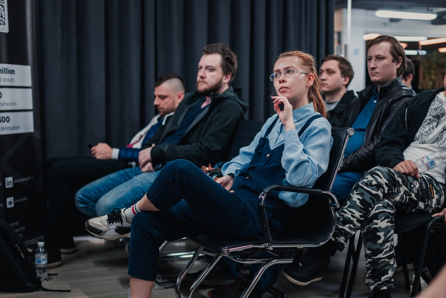 Влад Макаров (финансовый директор Everstake) и Виталий Пархоменко (руководитель проекта в Everstake) представили Tezos, стейкинг и делегированный PoS. Также они рассказали о пекарях, процессе выпечки (создании блоков в Tezos) и особенностях управления в блокчейне Tezos. После сессии вопросов и ответов участники также пили чай и кофе в Blockchain Hub, делились своими мыслями и мнениями о Tezos.